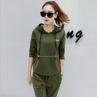 Harga Fat mm Spring and Autumn loose tide sports suit hoodie two-pieceSets (Dark green color) (Dark green color) in Singapore