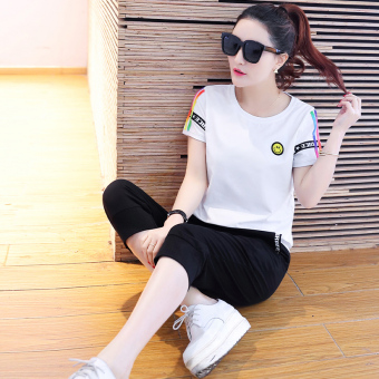 Price Loose Running short-sleeved sports suit two-piece sets casualclothes (White [length pants]) (White [length pants]) in Singapore