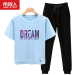 Review 2017 summer New style Korean-style cartoon Print slit short-sleeved t-shirt suit female loose sportswear two-piece sets tide (Dark blue color) in Singapore