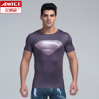 Price Sports Men's Fitness short sleeved ultra-stretch T-shirt slim fit clothing (Superman short sleeve gray) (Superman short sleeve gray) in Singapore